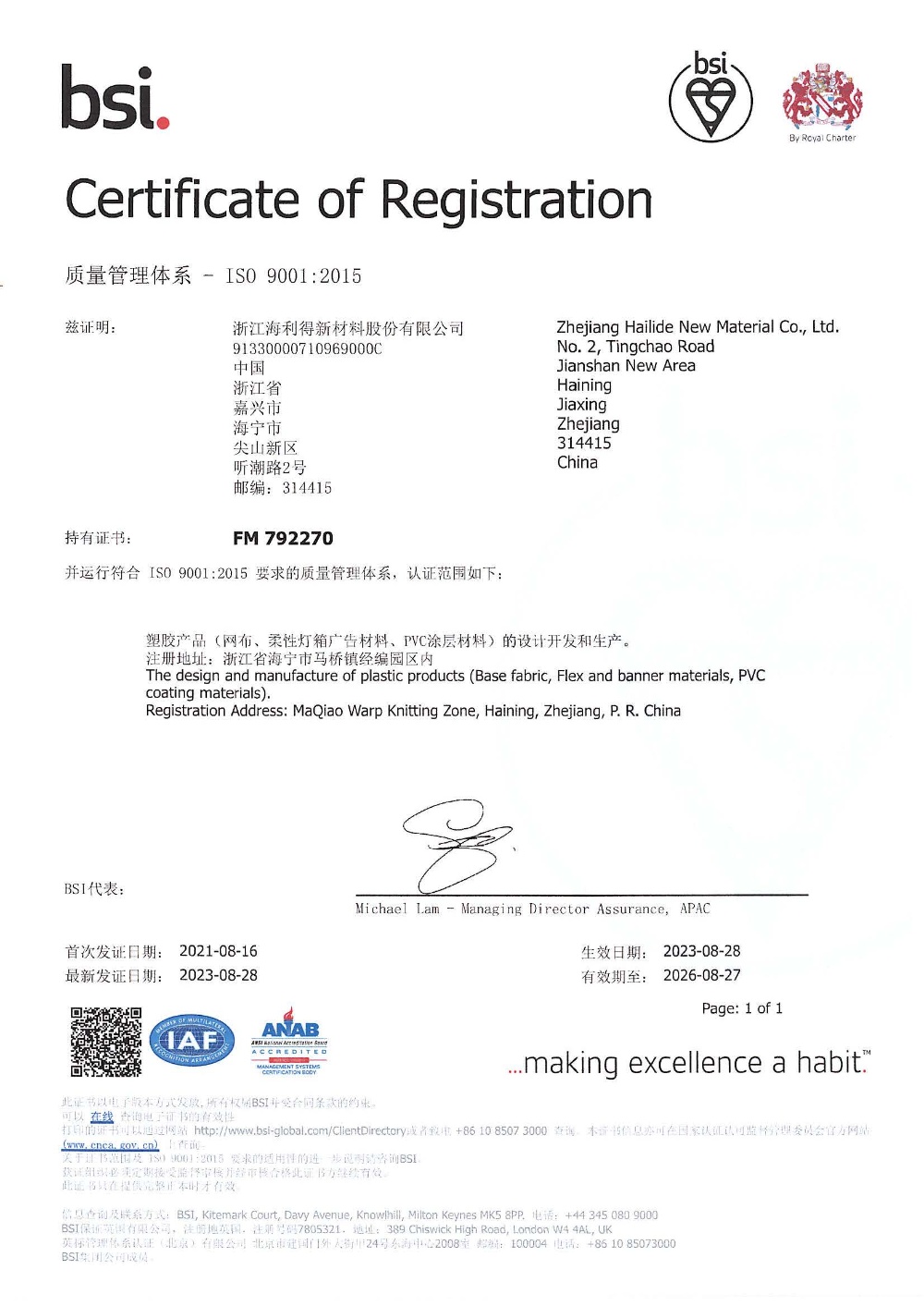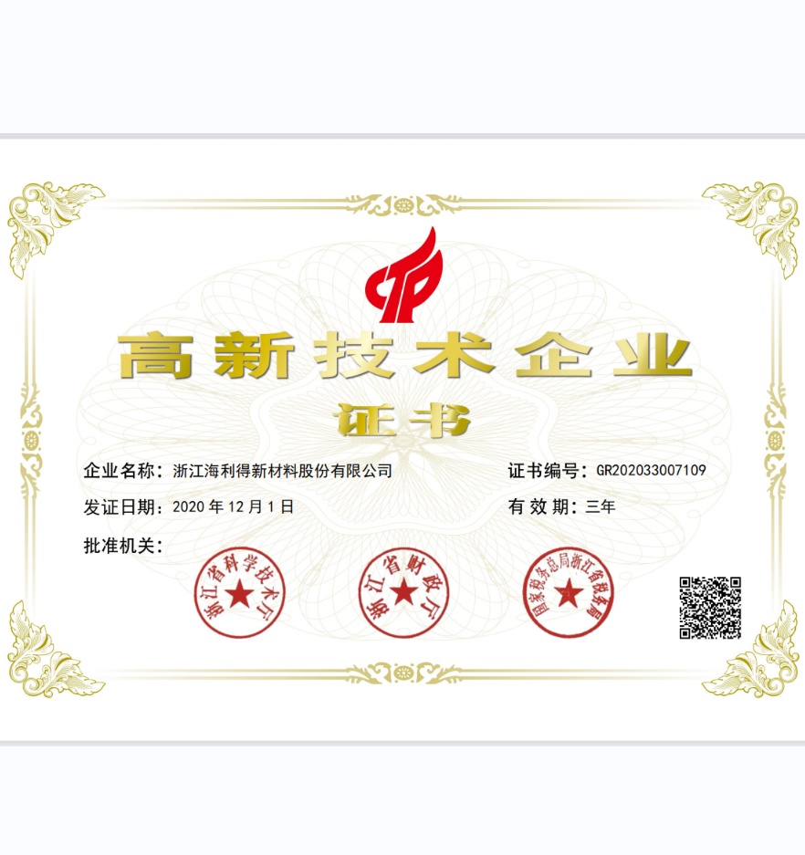 浙江海利得新材料股份有限公司成立于2001年,2008年1月在深交所上市,股票代碼002206。公司主營(yíng)產(chǎn)品:聚酯切片、滌綸工業(yè)絲、輪胎簾子布、數(shù)碼噴繪材料、涂層材料、裝飾材料、石塑地板等,產(chǎn)品遠(yuǎn)銷海內(nèi)外80余個(gè)國(guó)家和地區(qū)。