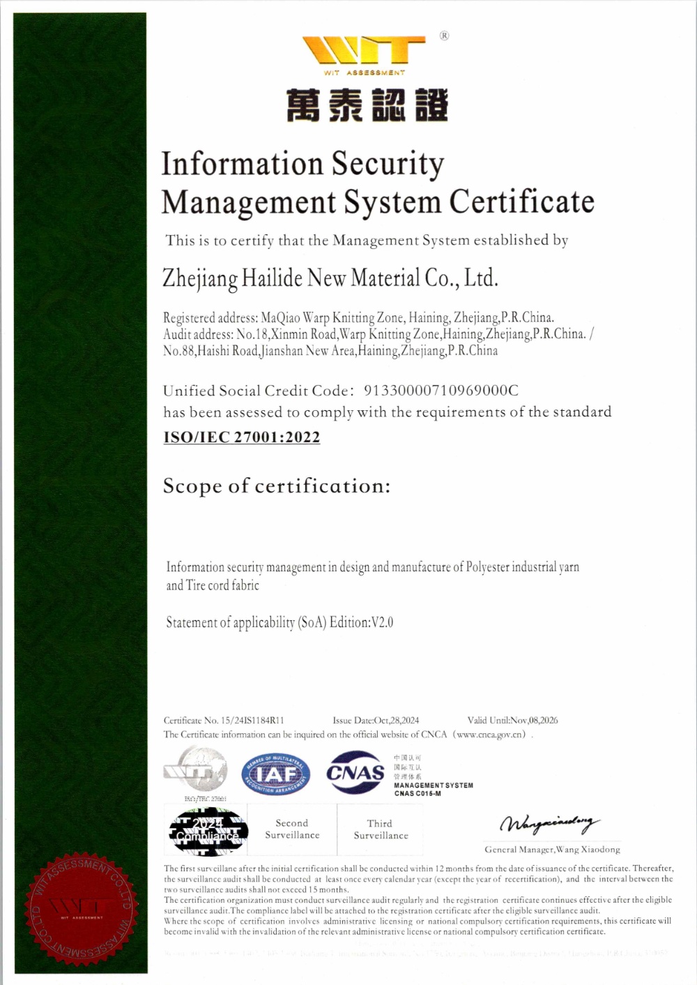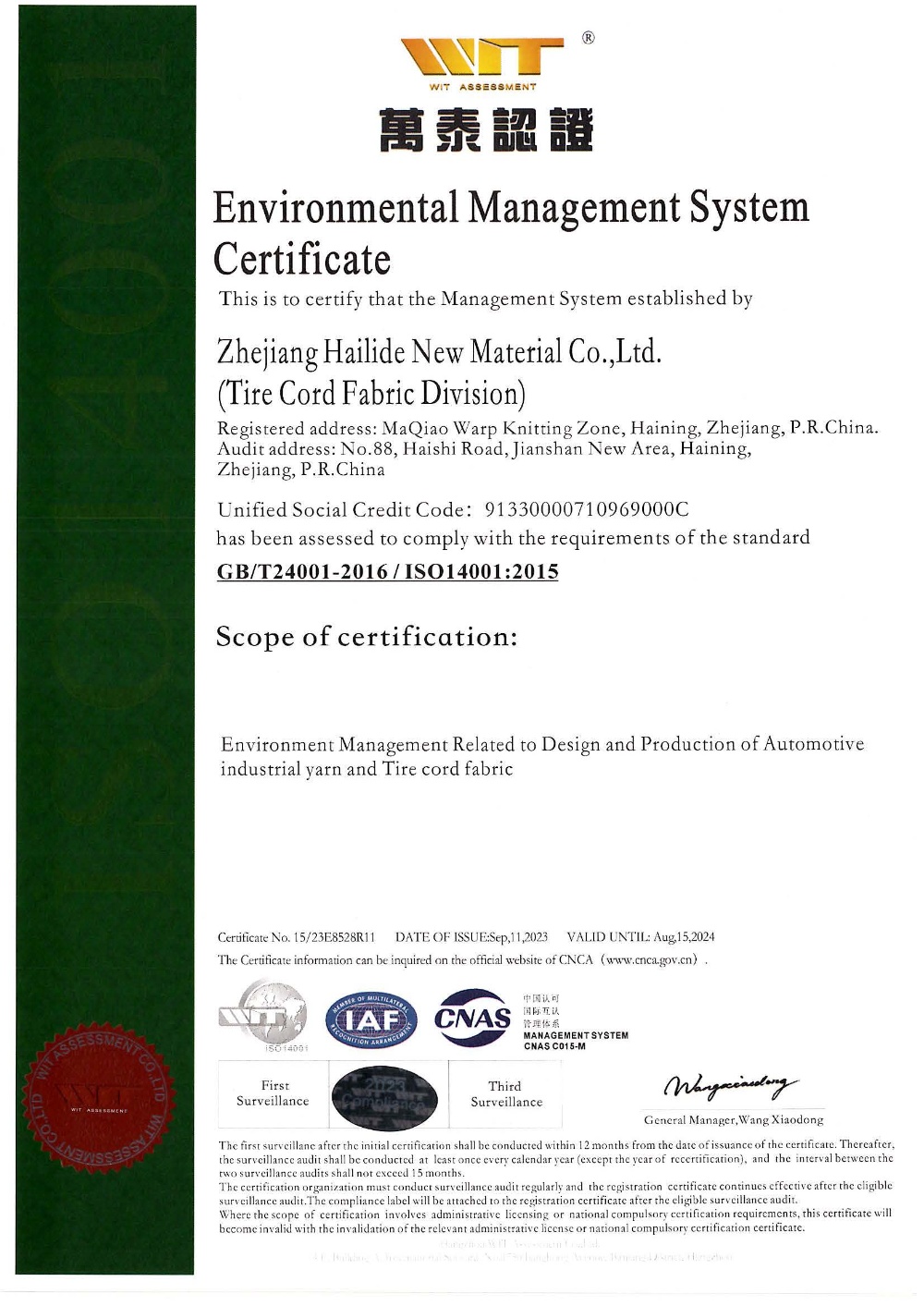 Main Business:Industrial Polyester Yarn:110kt/y (Phase 1)