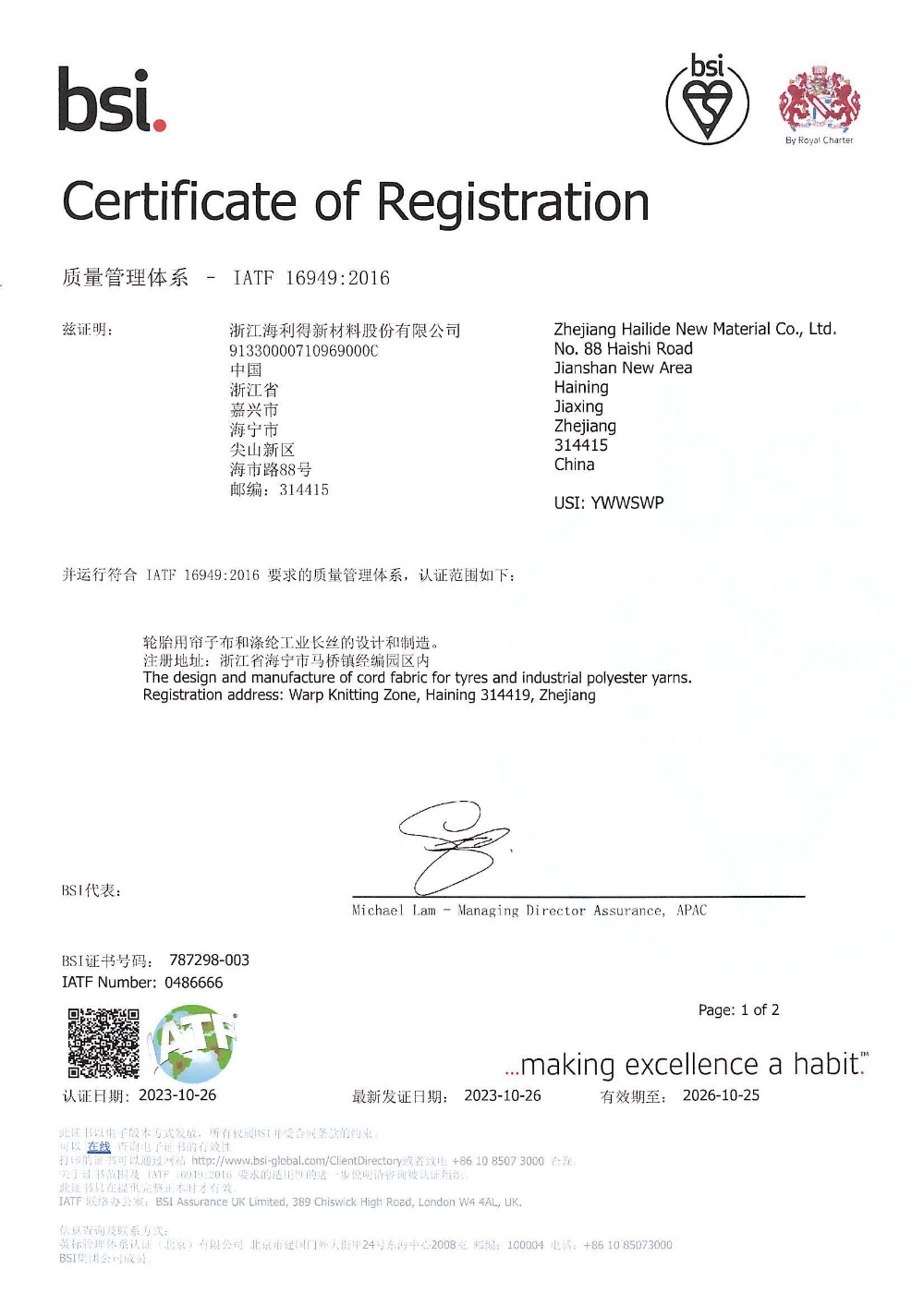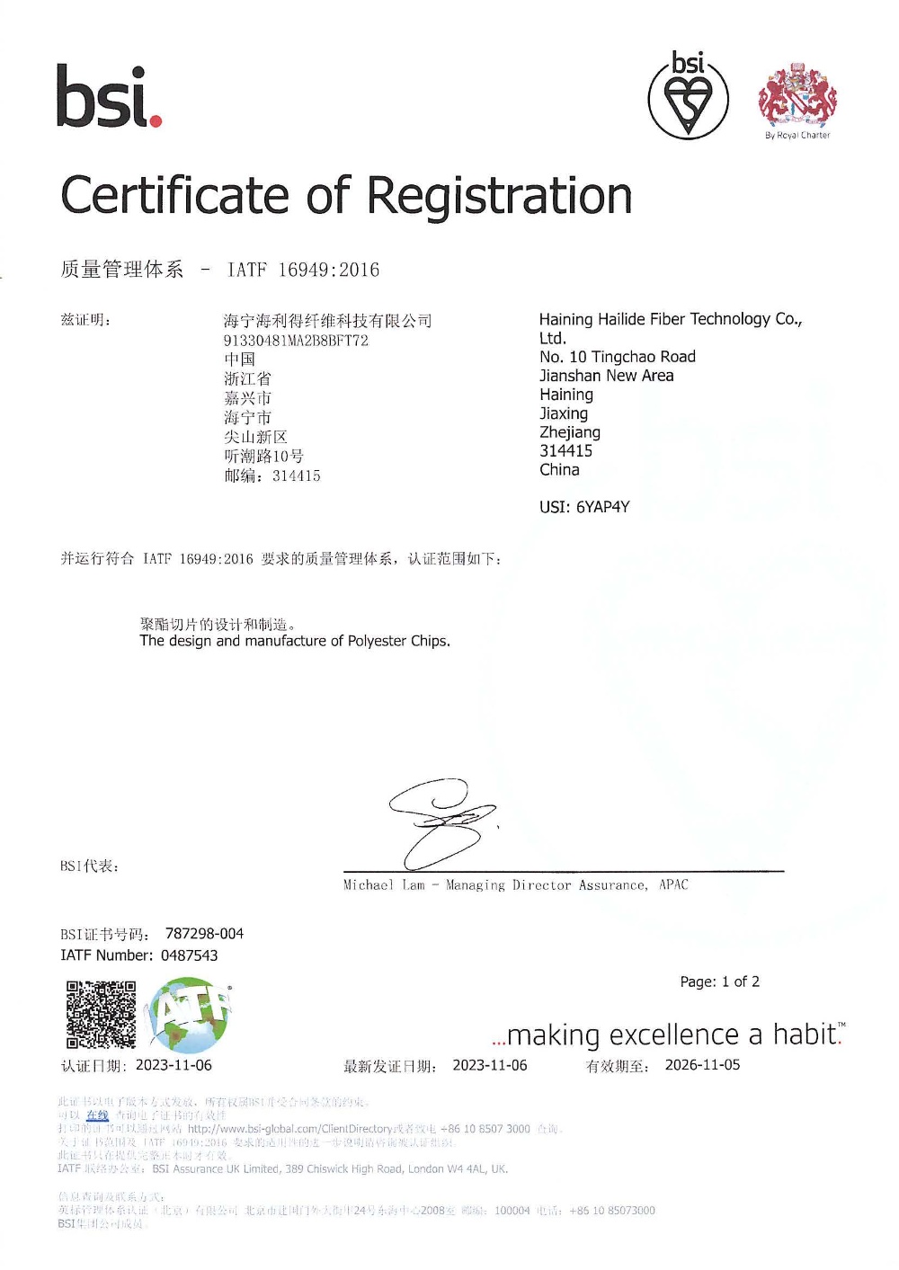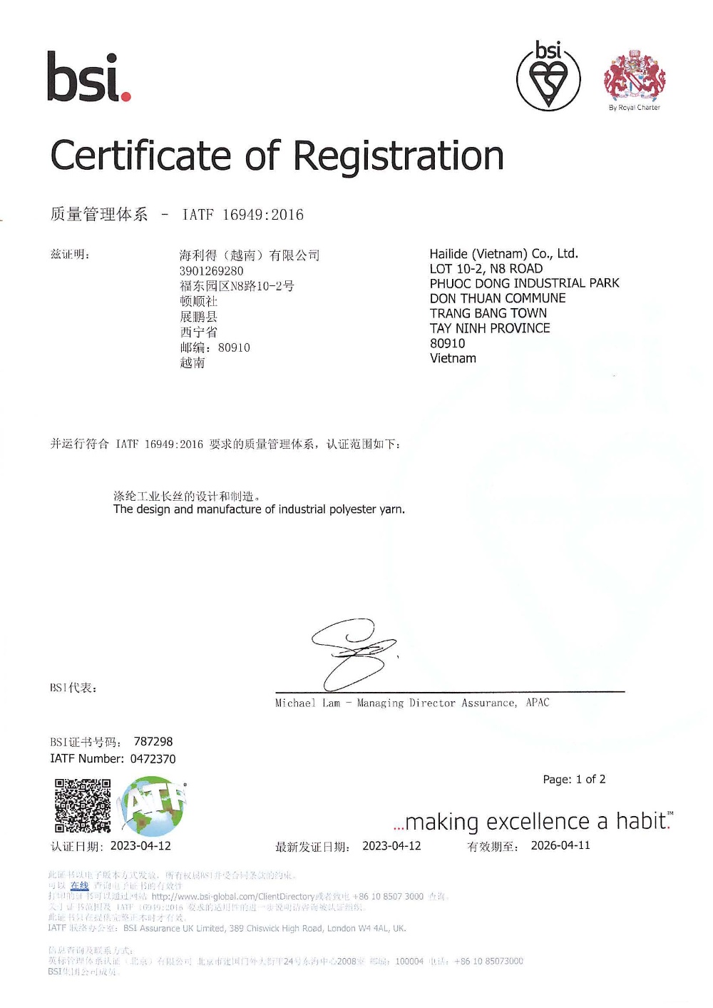 Registration Location: Phuoc Dong IP, Tay Ninh Province (65 KM west of Hochiminh city)