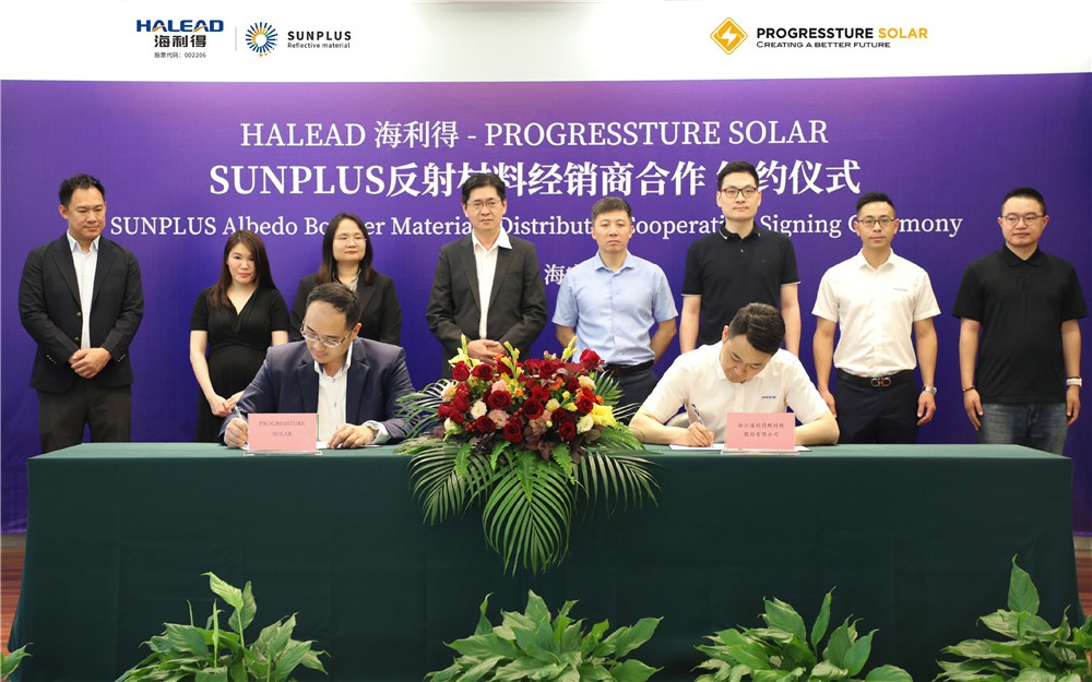 近日,海利得公司與馬來西亞Progressture Solar公司(以下簡稱“Progressture Solar”)正式簽署SUNPLUS反射材料合作協議,共同推動SUNPLUS反射技術在大型光伏電站中的融合解決方案,助力馬來西亞綠色能源轉型。