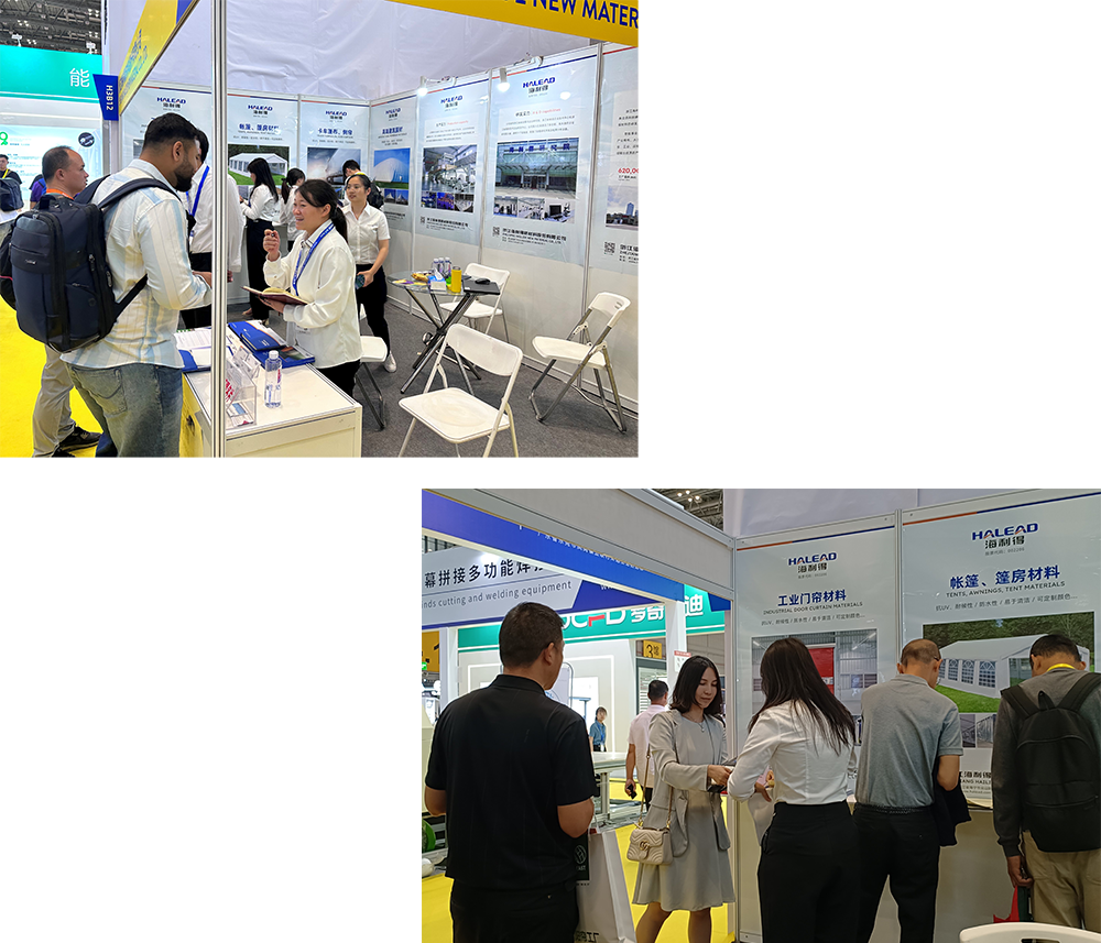 展會期間,海利得共接待60余位新老客戶,其中包括來自埃及、印度、意大利等國的國際客戶。眾多客戶對我們的卡車篷布、門簾布、篷房布、網格布及超透產品表現出濃厚興趣,積極進行詳細的咨詢和交流,并達成初步合作意向。