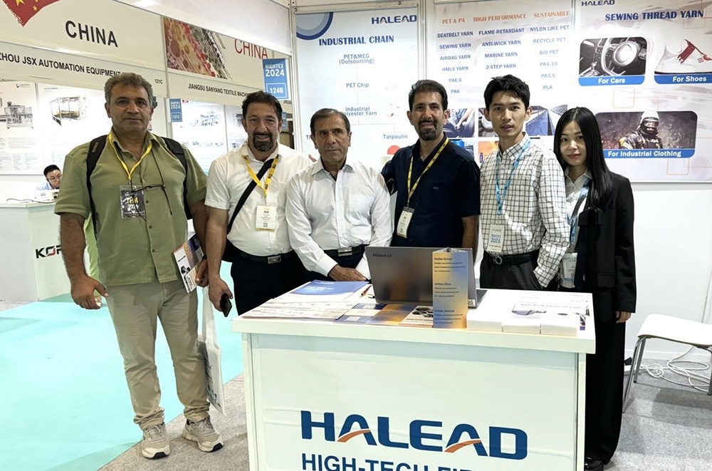 公司攜抗芯吸、尼龍、縫紉線、PPS等系列差異化產品參展,吸引了來自土耳其、德國、意大利等國家的新老客商駐足觀看。其中,低收縮產品因其廣泛應用于膠管、篷布、膜材料等領域,迎合了土耳其市場需求,備受青睞。而抗芯吸產品能夠解決由于“燈芯效應”造成的產業用布吸濕吸水問題,展現出強大的市場潛力,成為本次展會的主推產品之一。